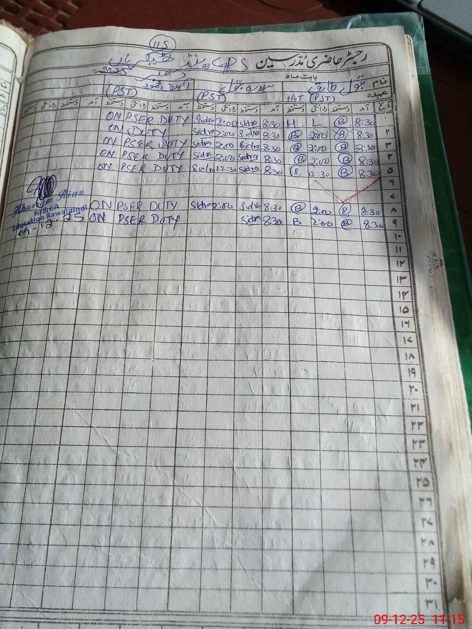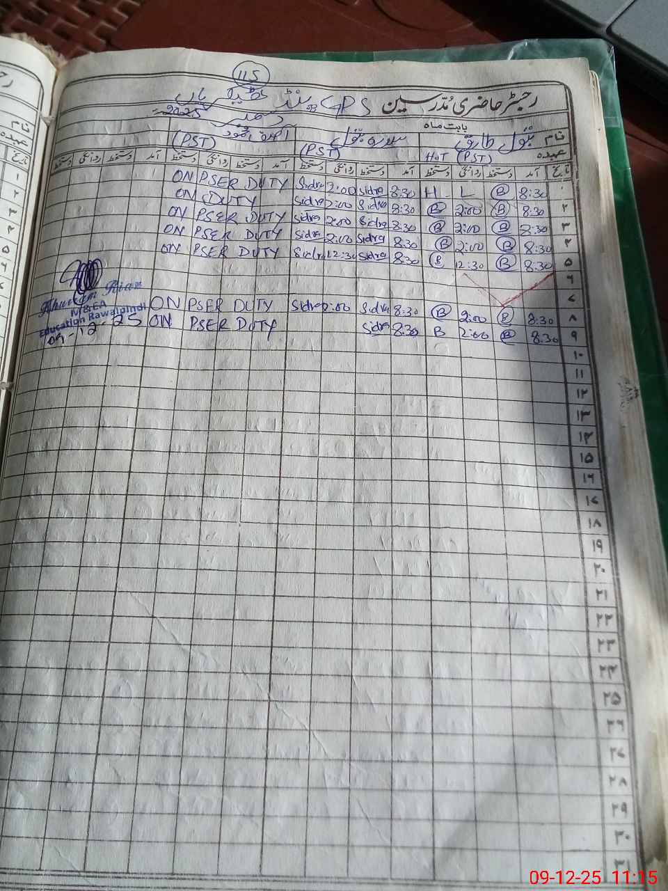 | CNIC | Full Name | Designation | R/C | Absence During Last Calender Month |