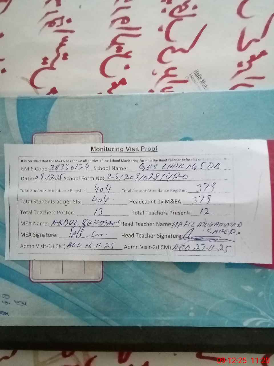 | EMIS Code: 38330124 | Name of School: GES CHAK NO 5 DB | |||
