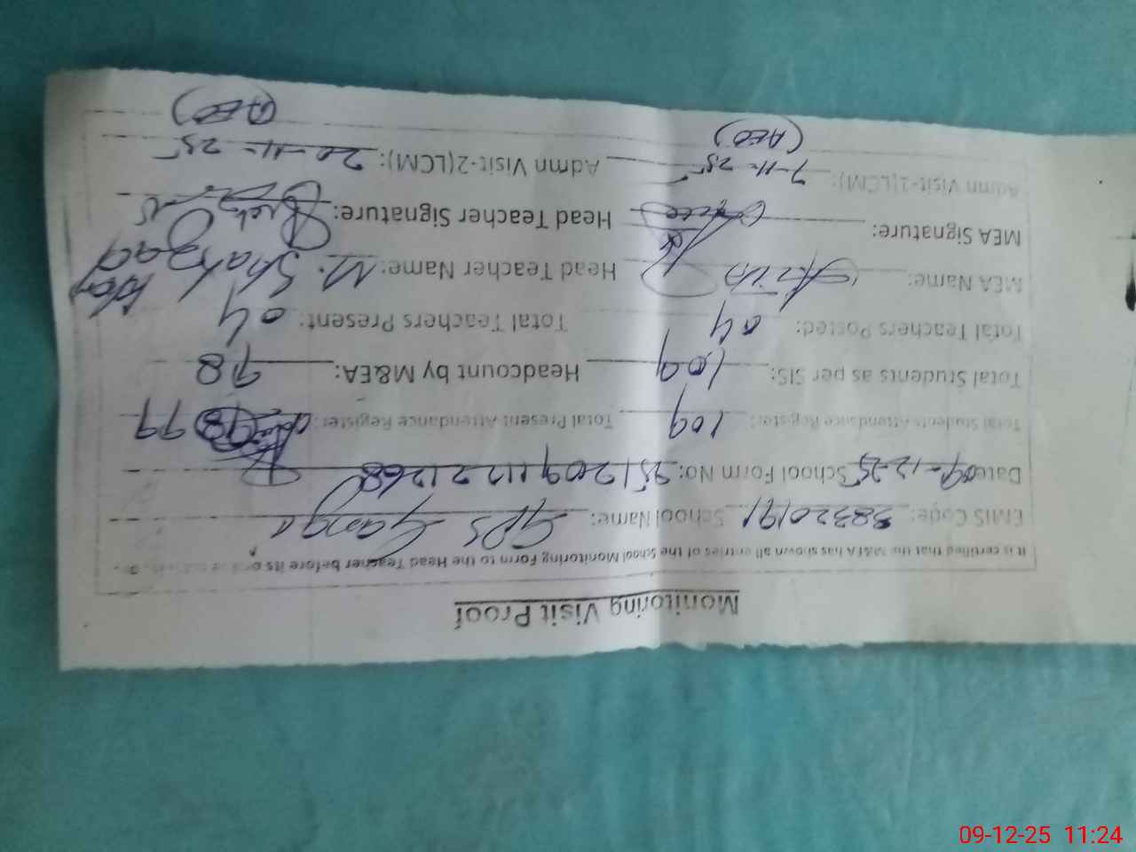 | Attendance Register | Head Teacher | MEA with School | Visit Proof |