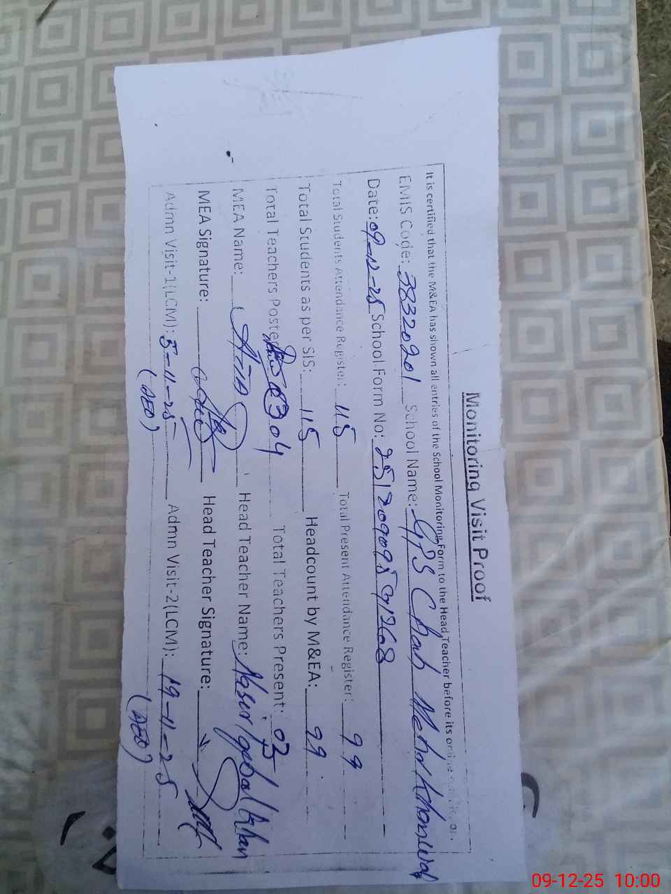 | EMIS Code: 38320201 | Name of School: GPS CHAH MEHR KHAN WALA | |||