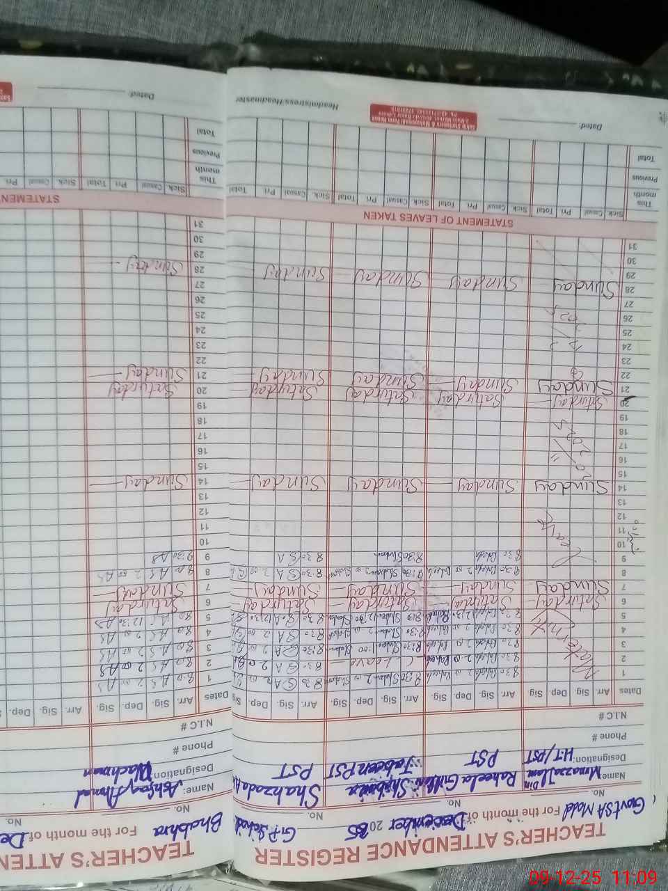 | CNIC | Full Name | Designation | R/C | Absence During Last Calender Month |
