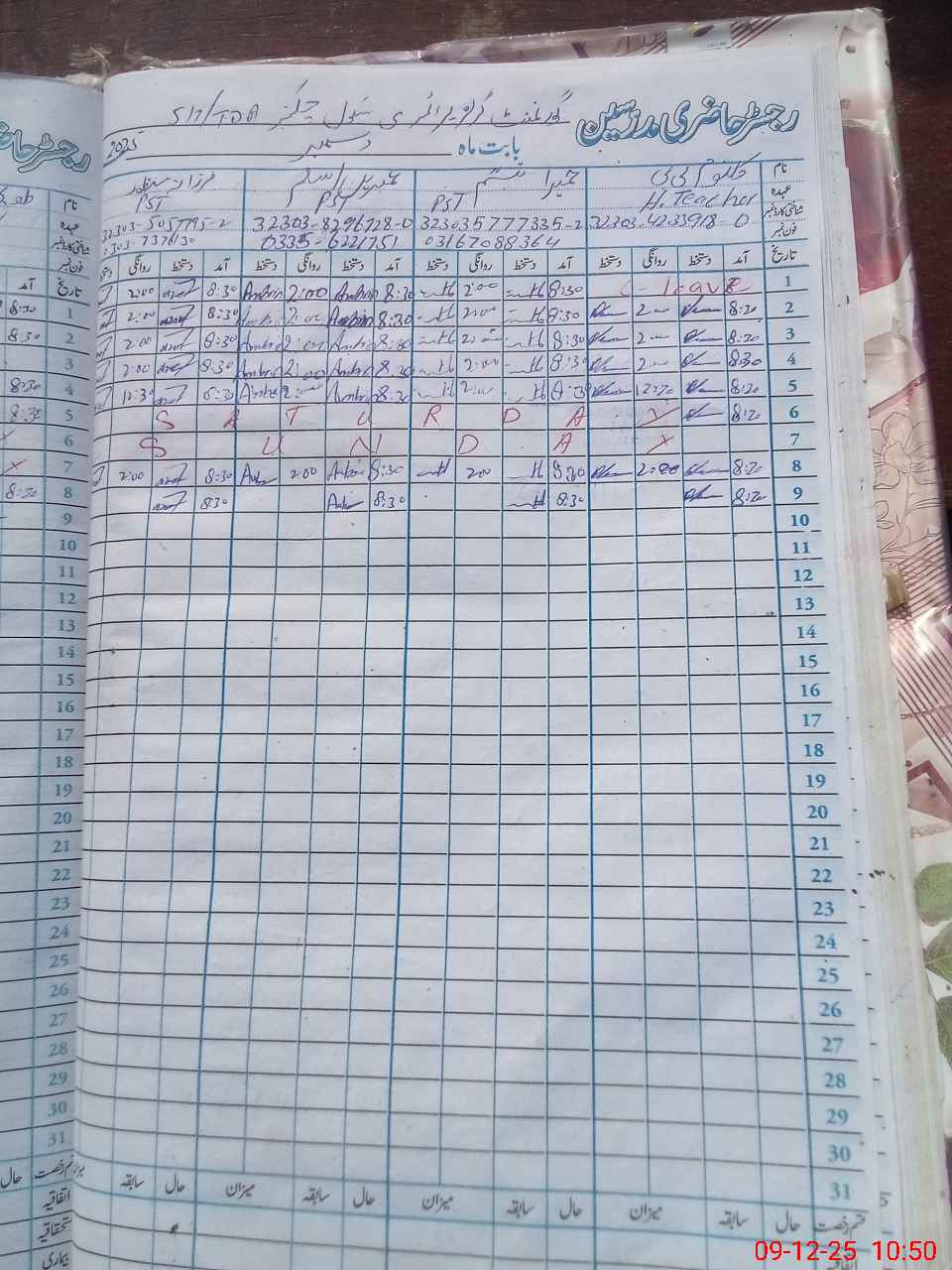 | CNIC | Full Name | Designation | R/C | Absence During Last Calender Month |