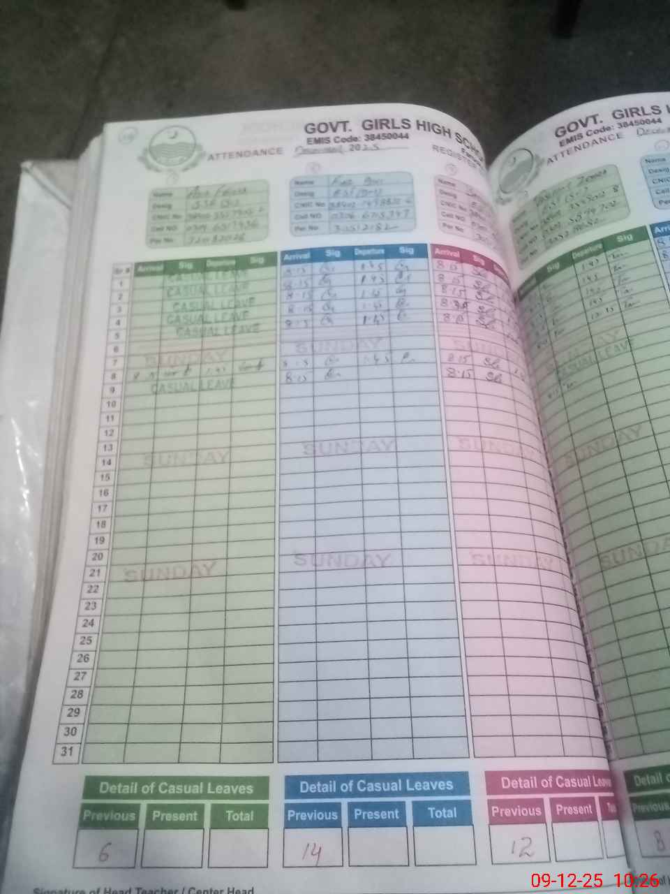 | CNIC | Full Name | Designation | R/C | Absence During Last Calender Month |
