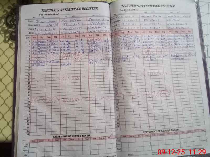 | CNIC | Full Name | Designation | R/C | Absence During Last Calender Month |