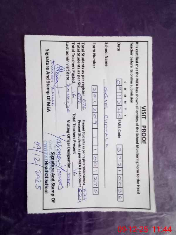 | EMIS Code: 37210036 | Name of School: GGHS CHOTALA | |||