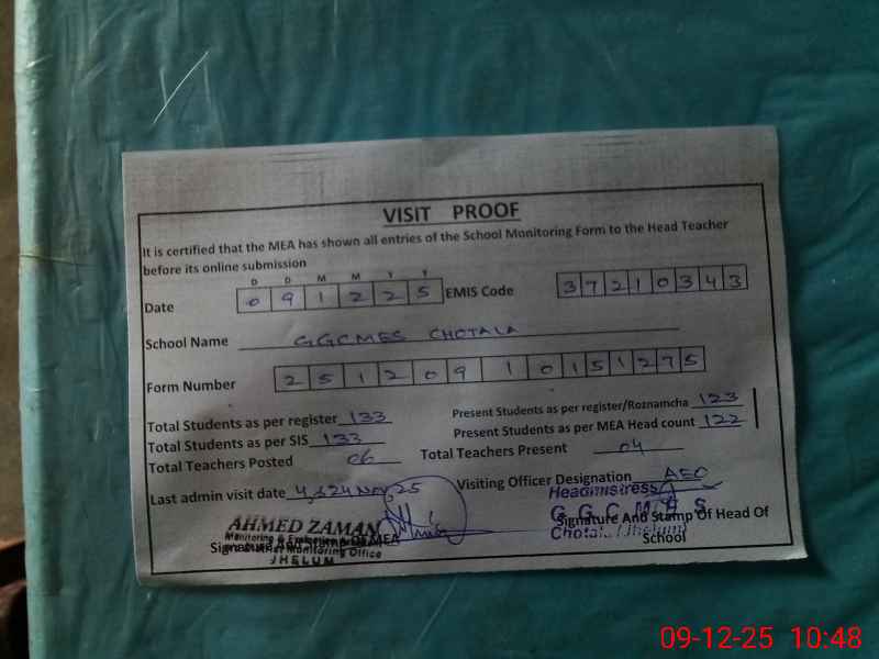 | EMIS Code: 37210343 | Name of School: GGCMES CHOTALA | |||