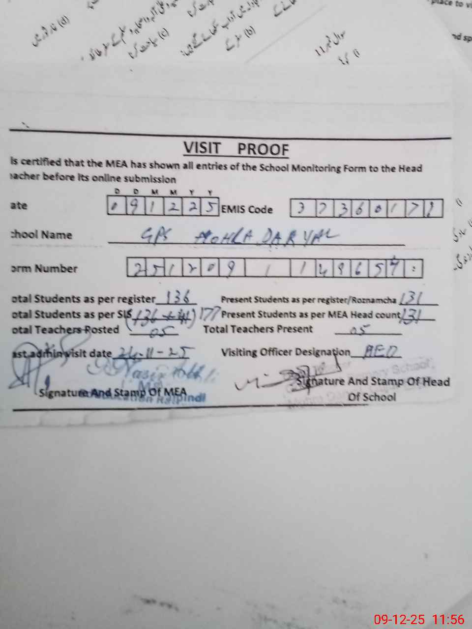 | EMIS Code: 37360171 | Name of School: GPS MOHRA DARYAL | |||
