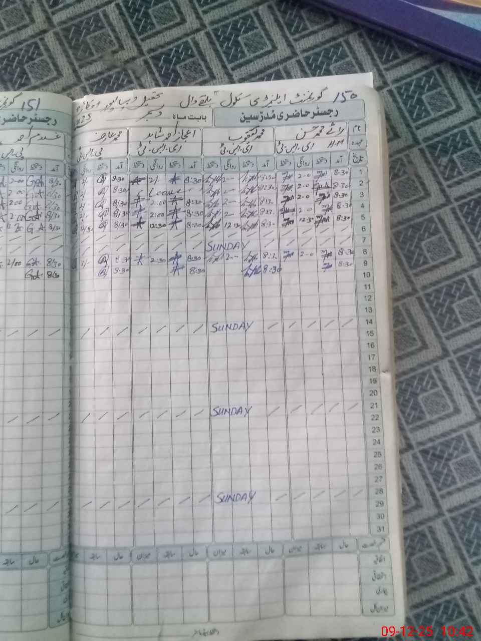 | CNIC | Full Name | Designation | R/C | Absence During Last Calender Month |