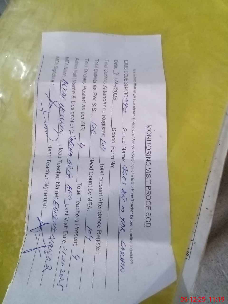 | EMIS Code: 38430090 | Name of School: GGES KOT MUHAMMAD YAR LAKHIN | |||