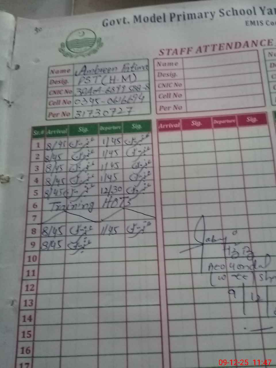 | Name: AM**** FA**** Designation: (School Headmaster's/Headmistress's) PST Phone/Cell Number: 03**** |