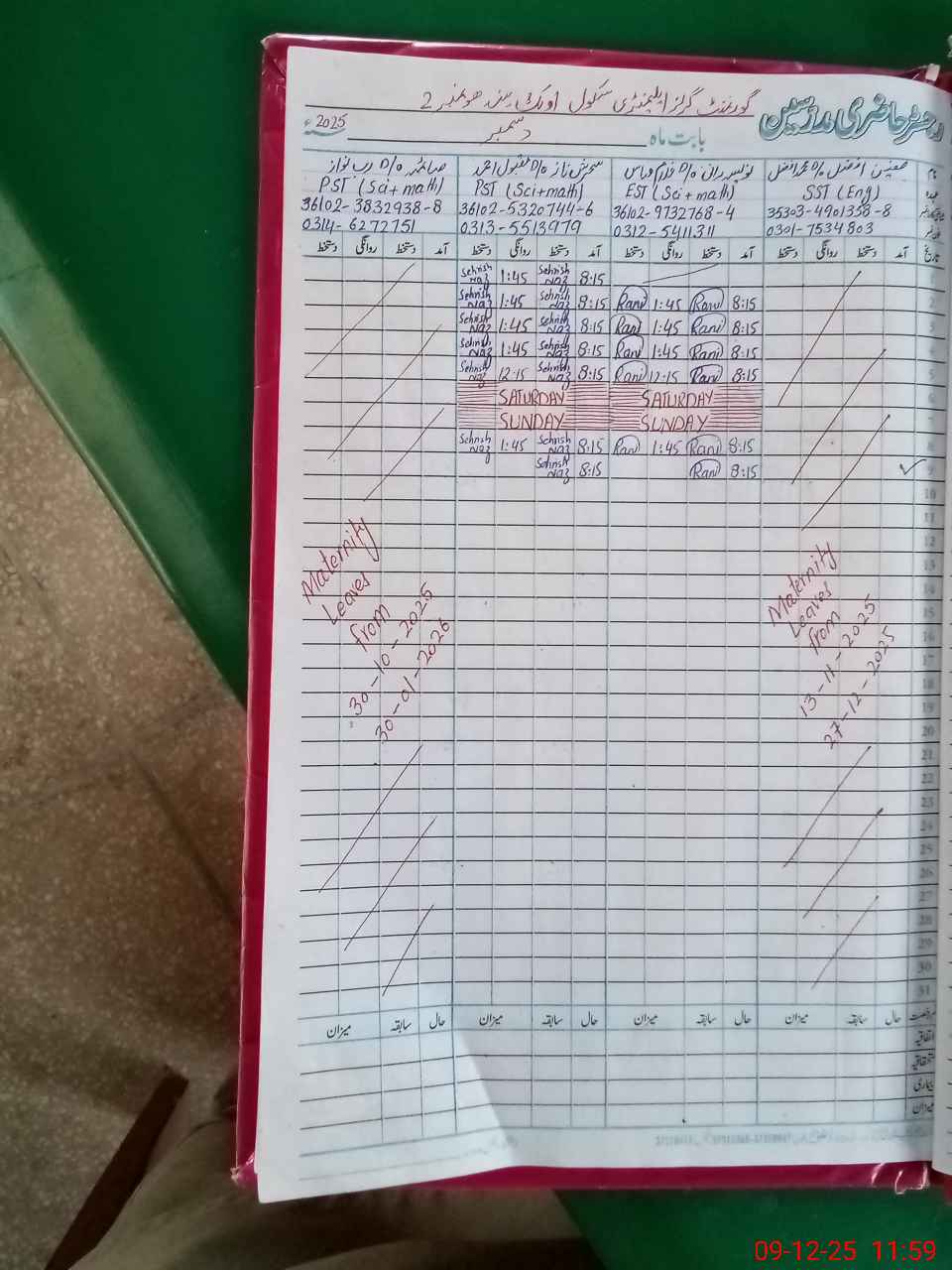| Leave | Duty | Absent | Maternity | Medical | Ex- Pak |