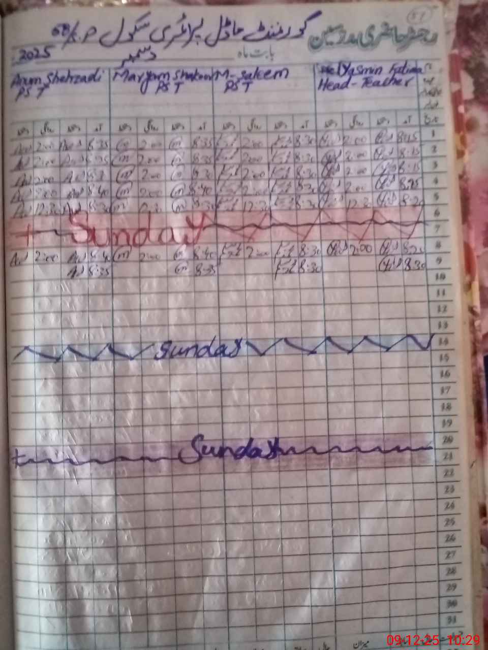 | CNIC | Full Name | Designation | R/C | Absence During Last Calender Month |