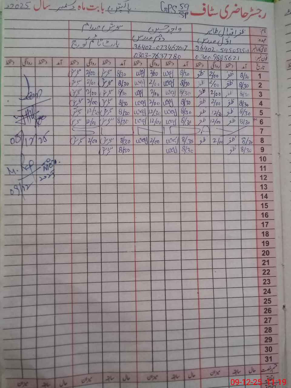 | CNIC | Full Name | Designation | R/C | Absence during last cal. month |