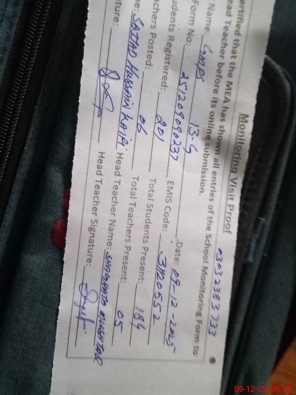 | Certified that this School was Inspected by the Undersigned MEA/DMO Today and the Information Stated Above is as Per Record. | |||||