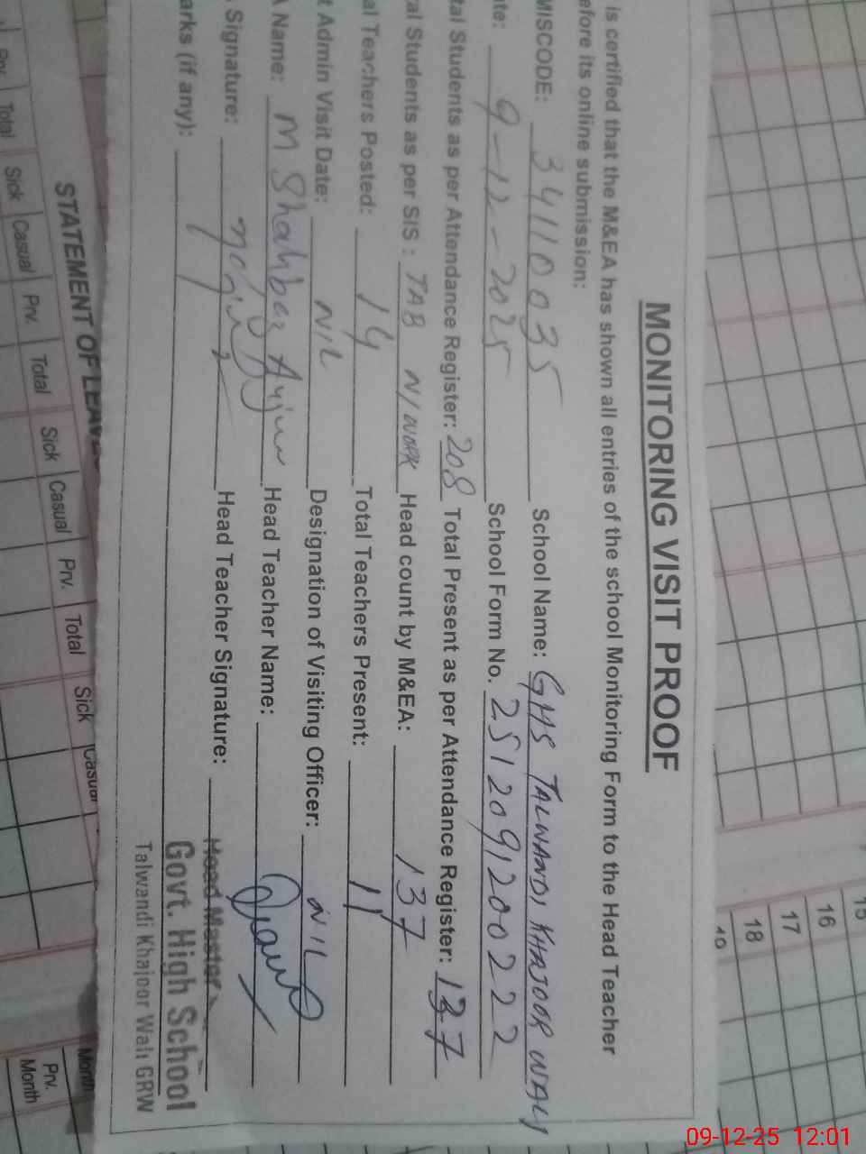 | EMIS Code: 34110035 | Name of School: GHS TALWANDI KHAJOOR WALI | |||