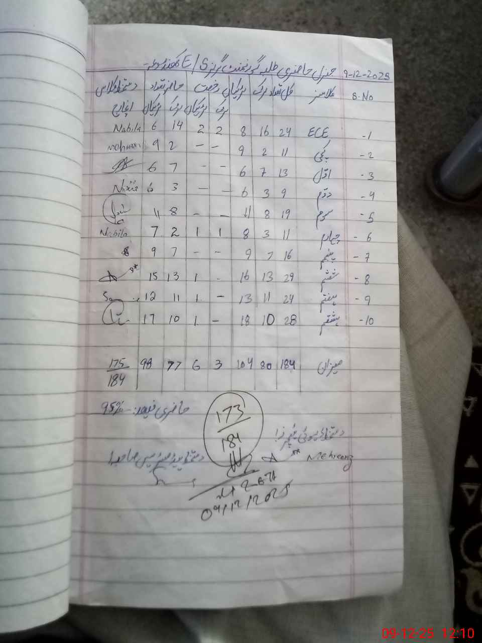 | Total Students Present | 0 | 20 | 13 | 9 | 19 | 7 | 16 | 28 | 23 | 27 | 173 | |||||