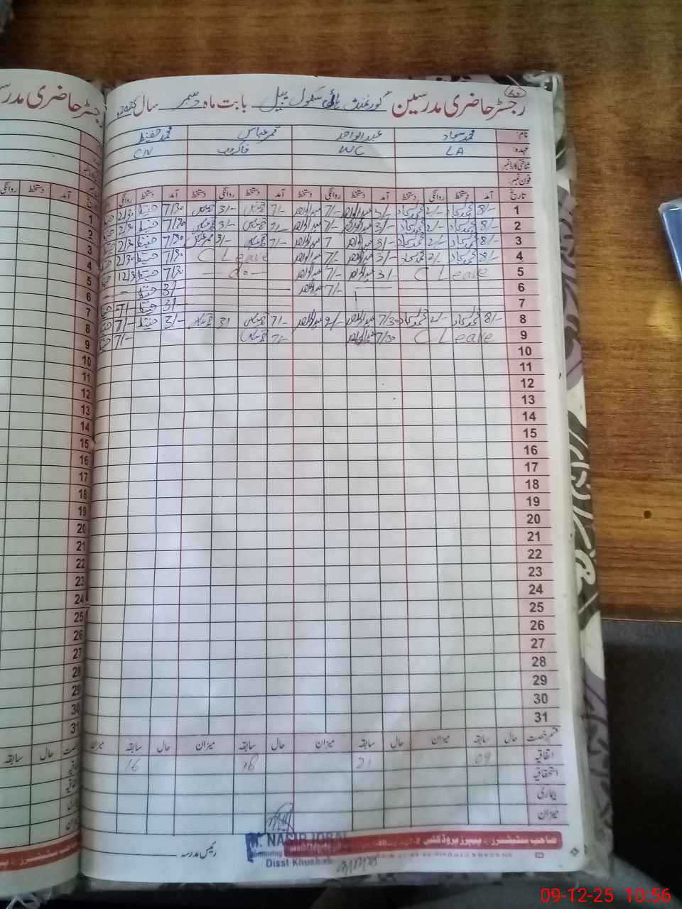 | CNIC | Full Name | Designation | R/C | Absence During Last Calender Month |