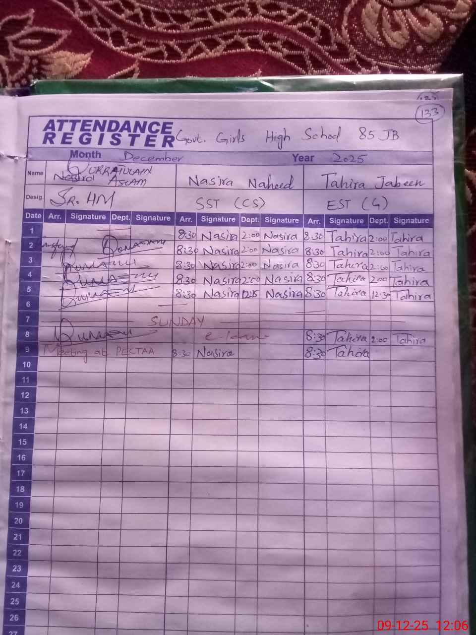 | Attendance Register | Head Teacher | MEA with School | Visit Proof |
