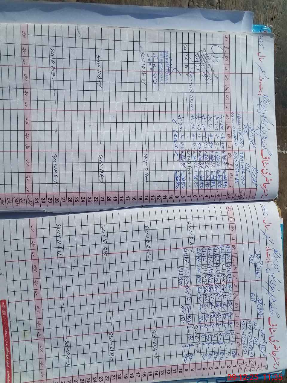 | CNIC | Full Name | Designation | R/C | Absence During Last Calender Month |
