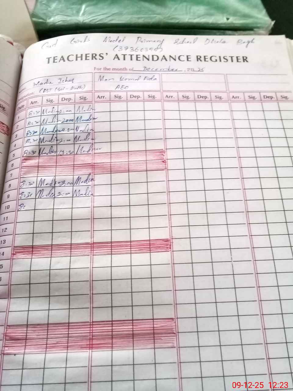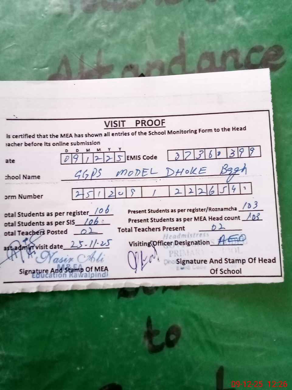 | Attendance Register | Head Teacher | MEA with School | Visit Proof |
