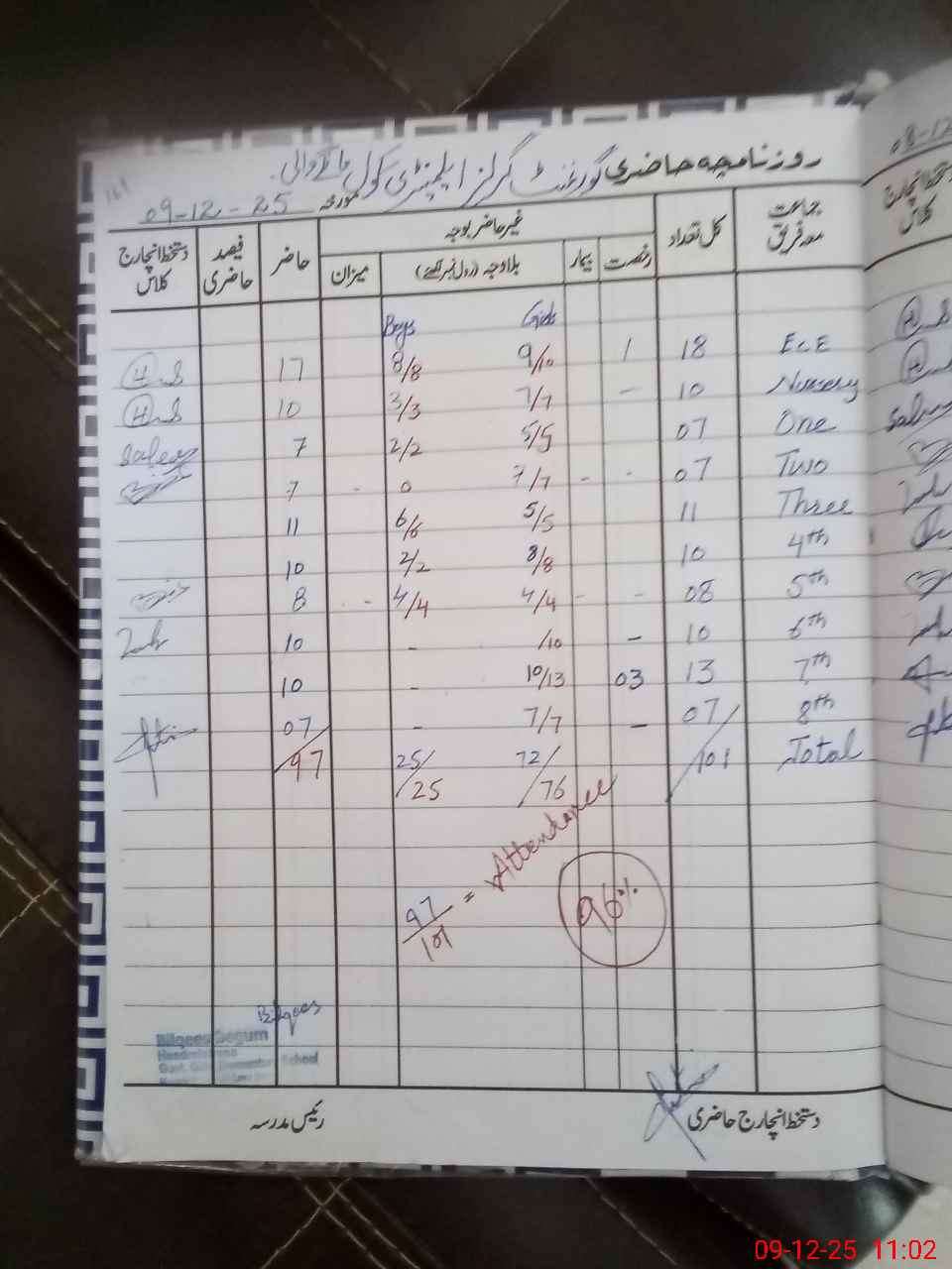 | Total Students Present | 0 | 17 | 7 | 7 | 11 | 10 | 8 | 9 | 10 | 7 | 96 | |||||
