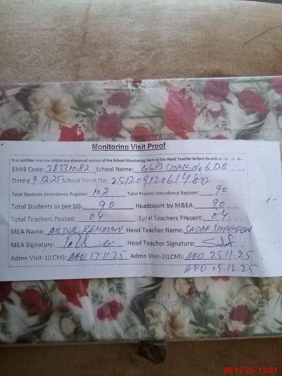 | EMIS Code: 38331082 | Name of School: GGPS CHAK NO.6 DB | |||