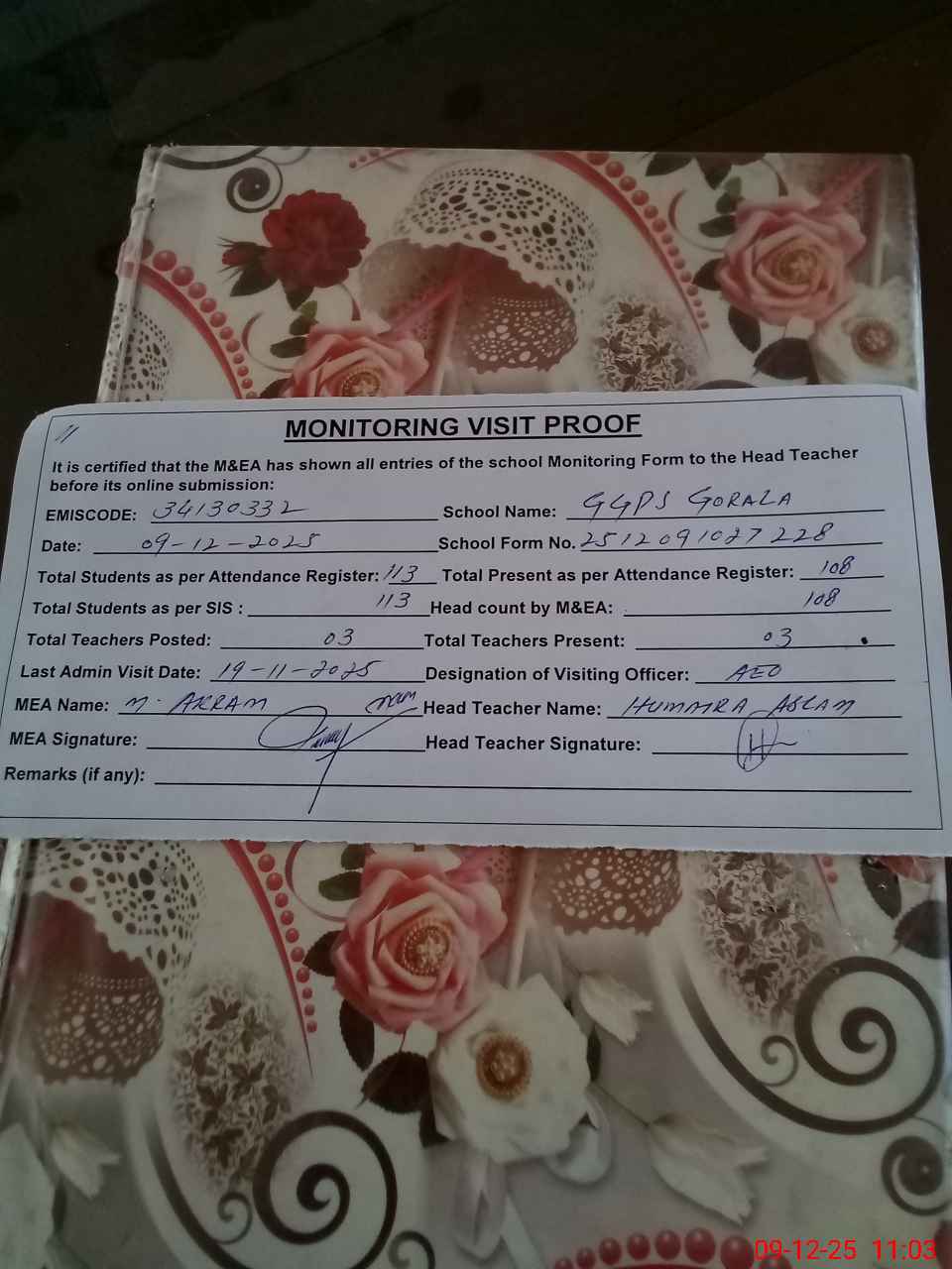 | EMIS Code: 34130332 | Name of School: GGPS GORALA | |||