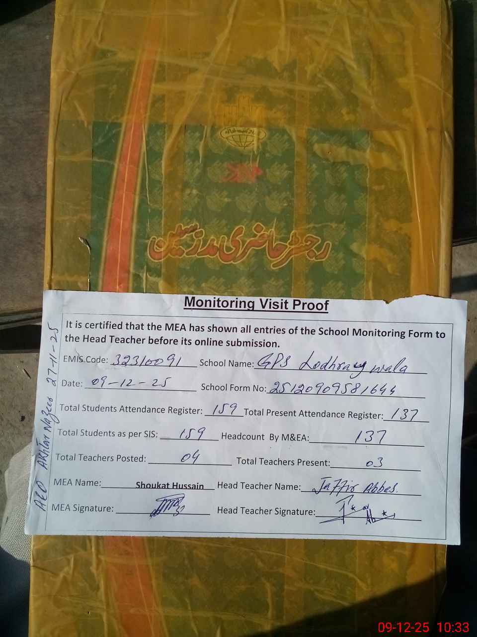 | EMIS Code: 32310091 | Name of School: GPS LODHRAY WALA | |||