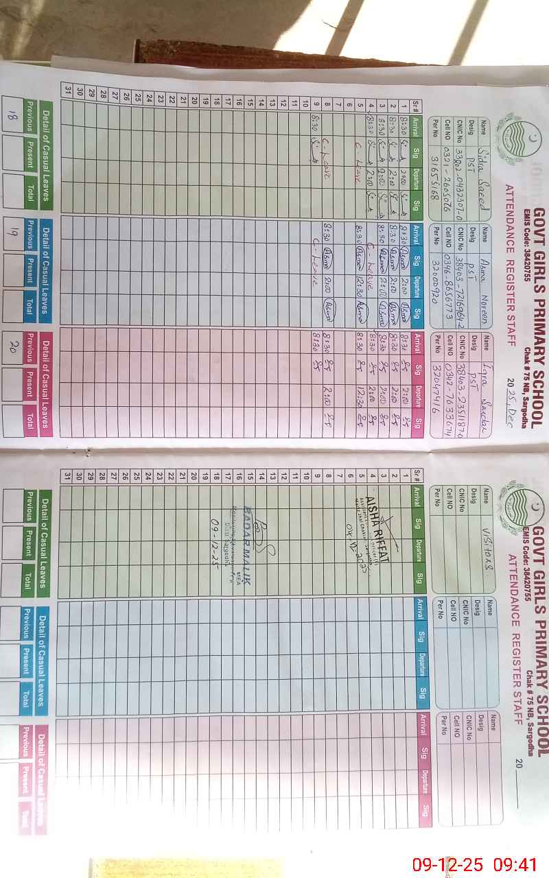 | District: SARGODHA | Tehsil: SARGODHA | Markaz: JHAL CHAKIAN - FEMALE | Level: Primary | |