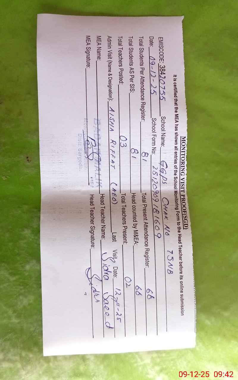 | EMIS Code: 38420755 | Name of School: GGPS CHAK NO.75 NB | |||