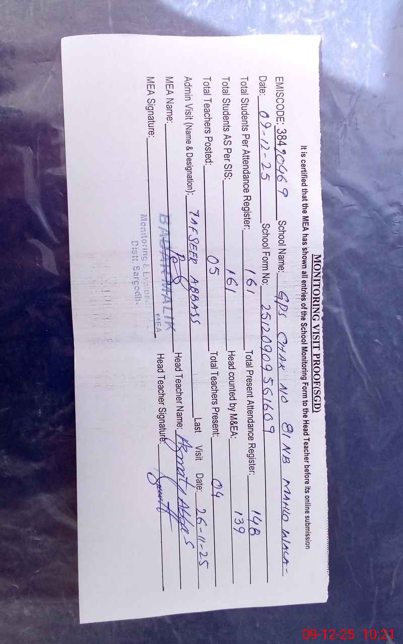 | EMIS Code: 38420469 | Name of School: GPS CHAK NO.81 NB MAHLO WALA | |||