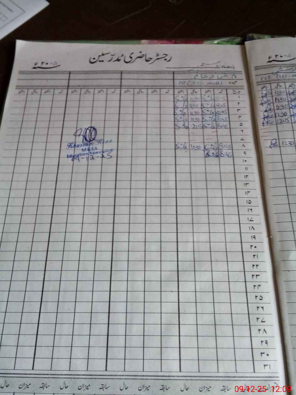 | CNIC | Full Name | Designation | R/C | Absence During Last Calender Month |