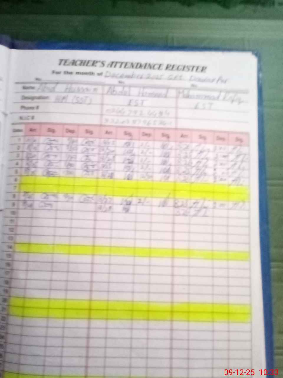 | Name: AB**** HU**** Designation: (School Headmaster's/Headmistress's) S.S.T Phone/Cell Number: 03**** |