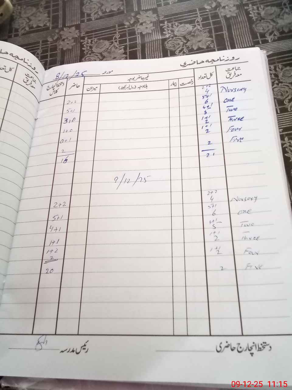 | Total Students Present | 0 | 0 | 6 | 5 | 1 | 2 | 2 | 20 | ||||||||