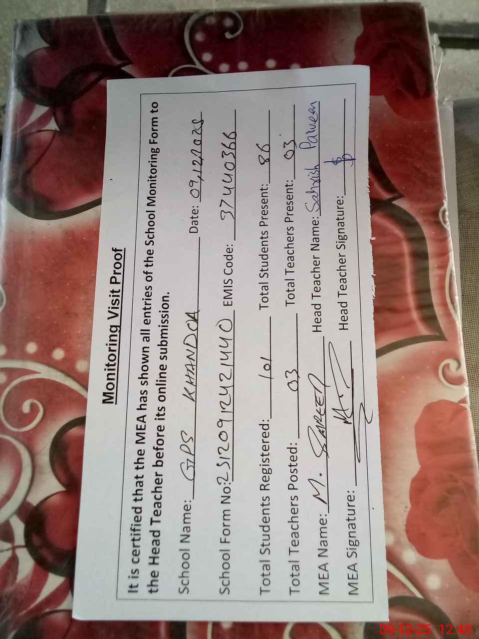 | EMIS Code: 37440366 | Name of School: GPS KHANDOWA | |||