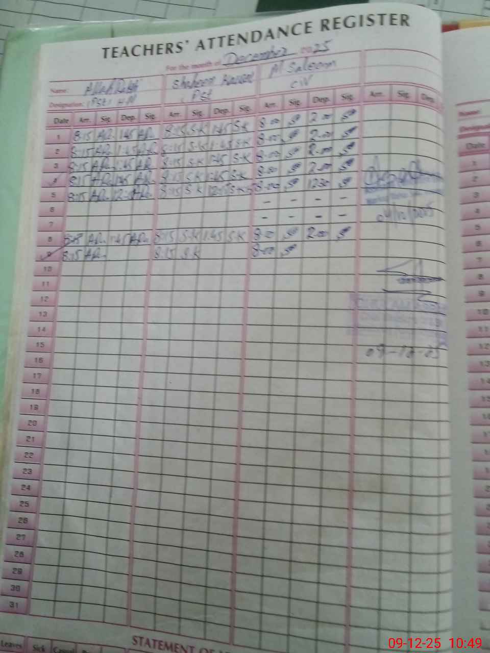 | Name: AL**** RA**** Designation: (School Headmaster's/Headmistress's) PTC Phone/Cell Number: 03**** |