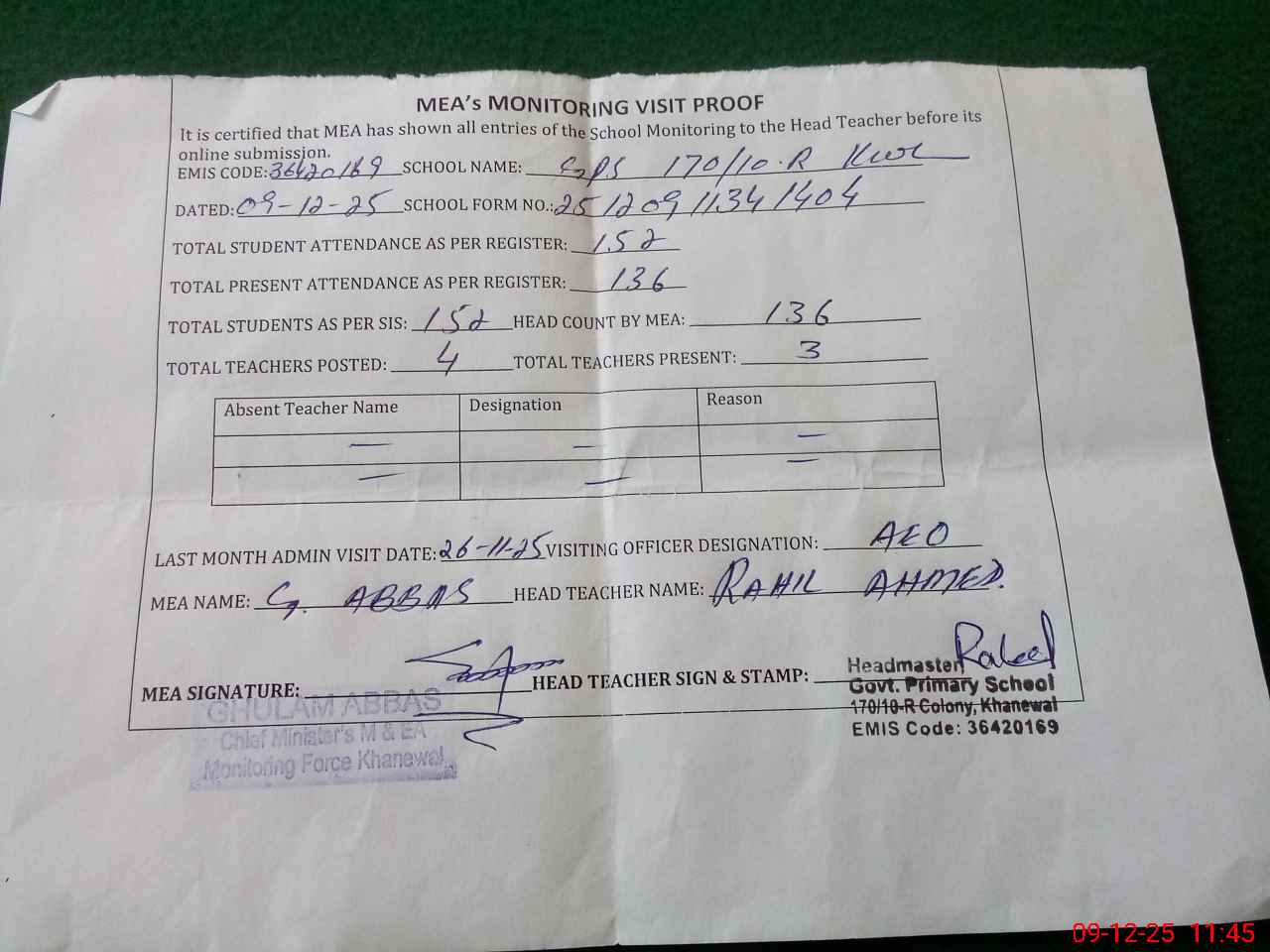 | EMIS Code: 36420169 | Name of School: GPS 170/10-R, KHANEWAL | |||