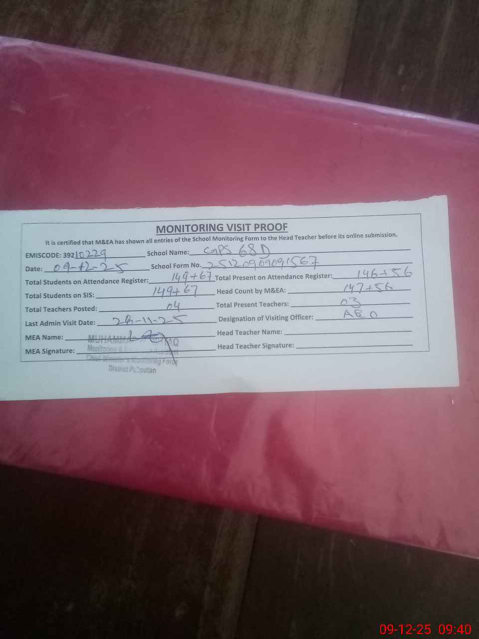 | EMIS Code: 39210229 | Name of School: GPS 68/D | |||