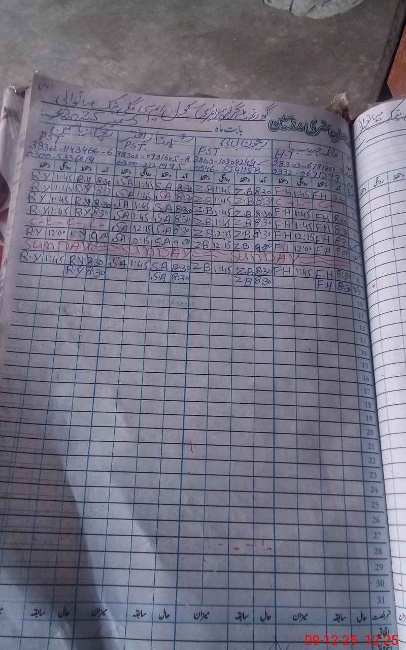 | Name: Fa**** Ha**** Designation: (School Headmaster's/Headmistress's) PST/ Phone/Cell Number: 03**** |