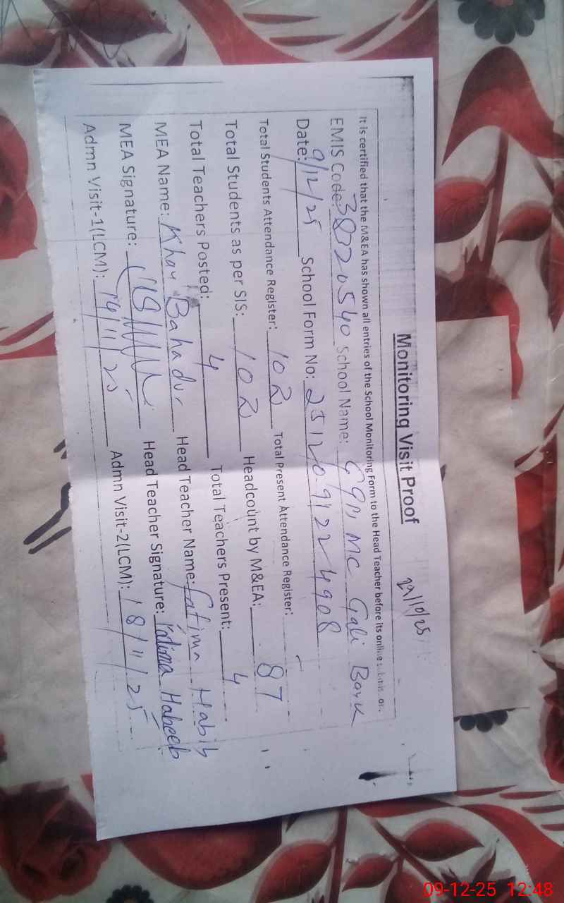 | EMIS Code: 38320540 | Name of School: GGPS MC GALI BANK | |||