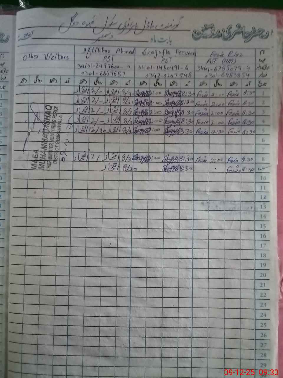 | Name: FO**** RI**** Designation: (School Headmaster's/Headmistress's) PST Phone/Cell Number: 03**** |