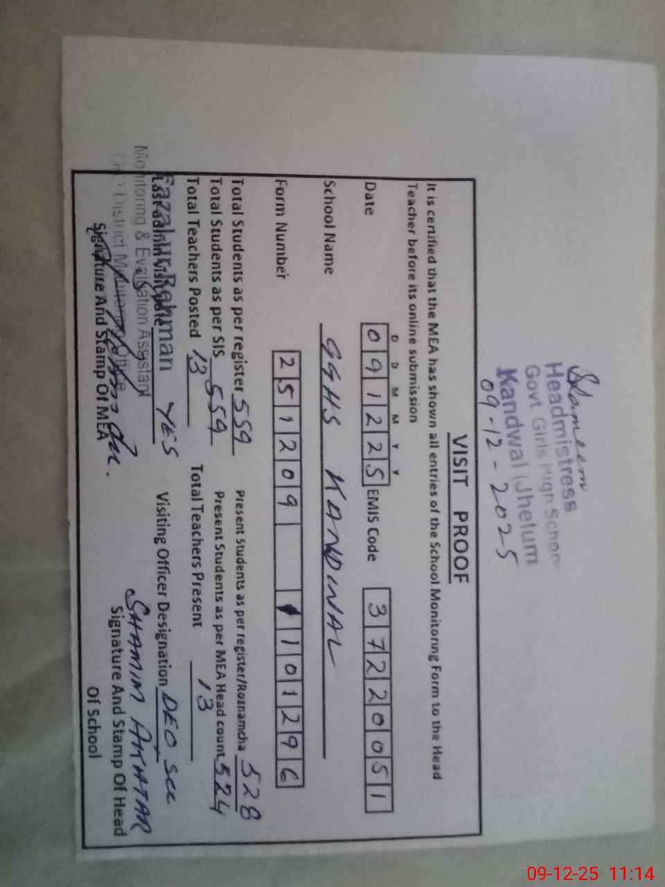 | EMIS Code: 37220051 | Name of School: GGHS KANDWAL | |||