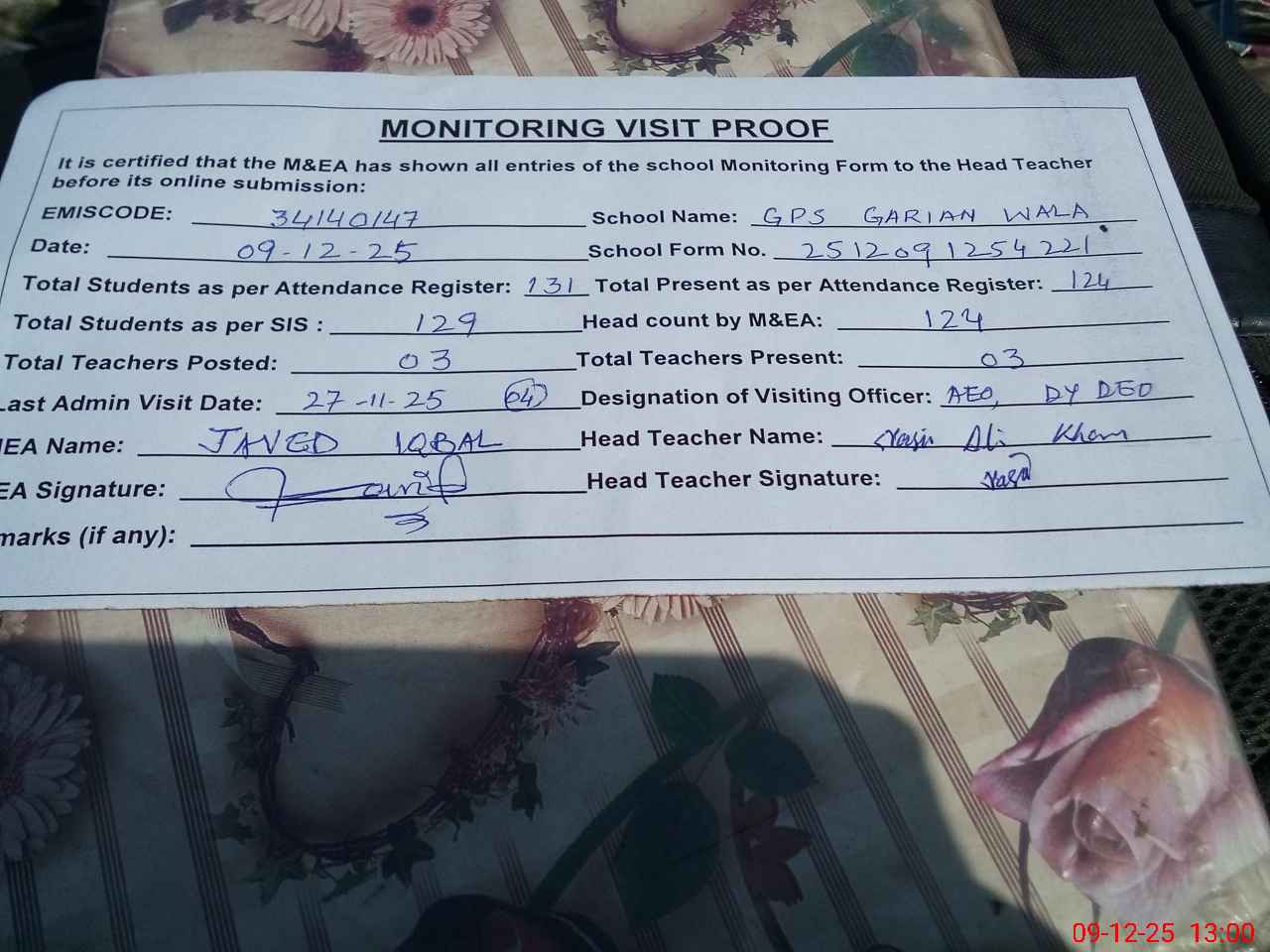| EMIS Code: 34140147 | Name of School: GPS GARIAN WALA | |||