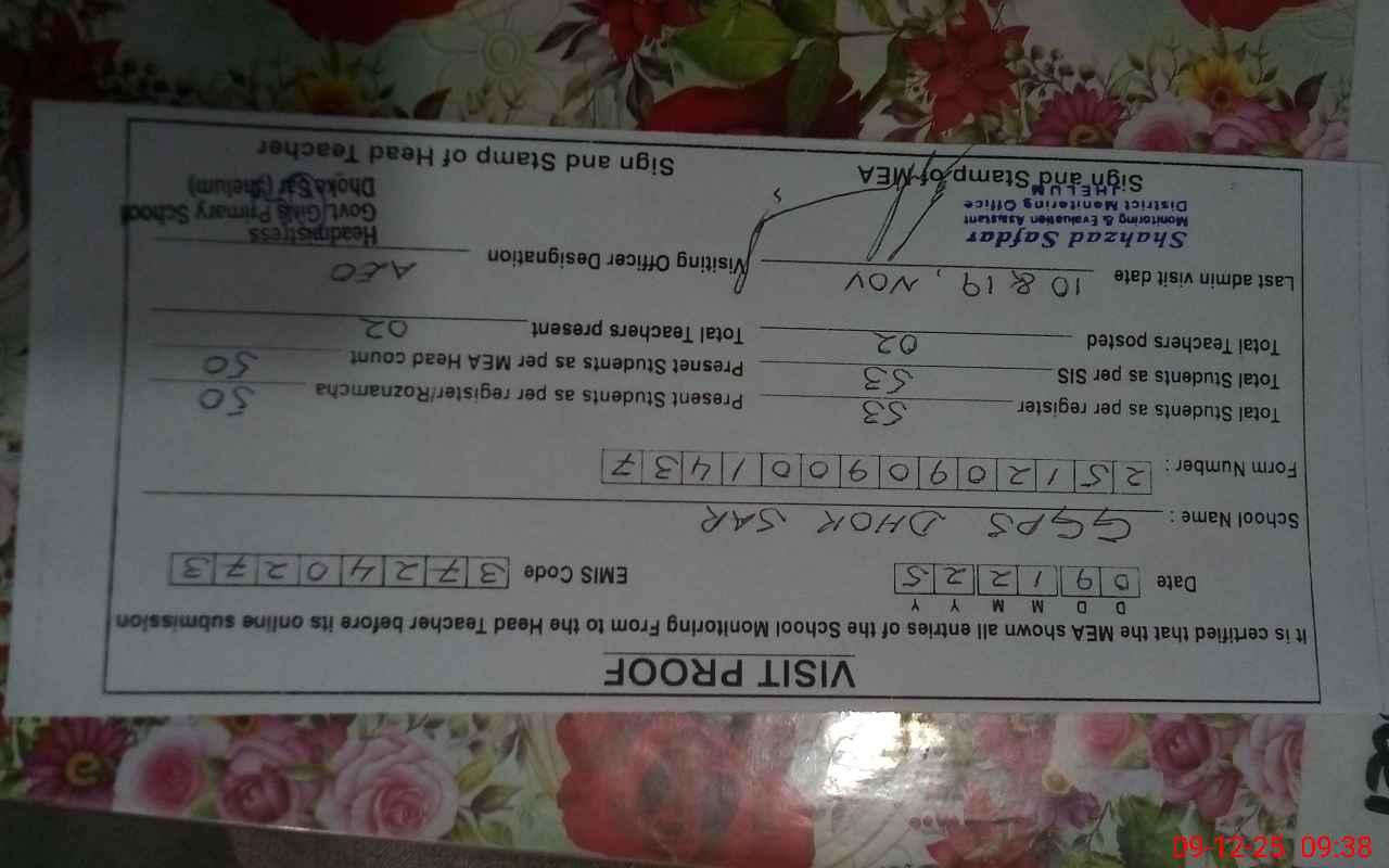 | EMIS Code: 37240273 | Name of School: GGPS DHOK SAR | |||