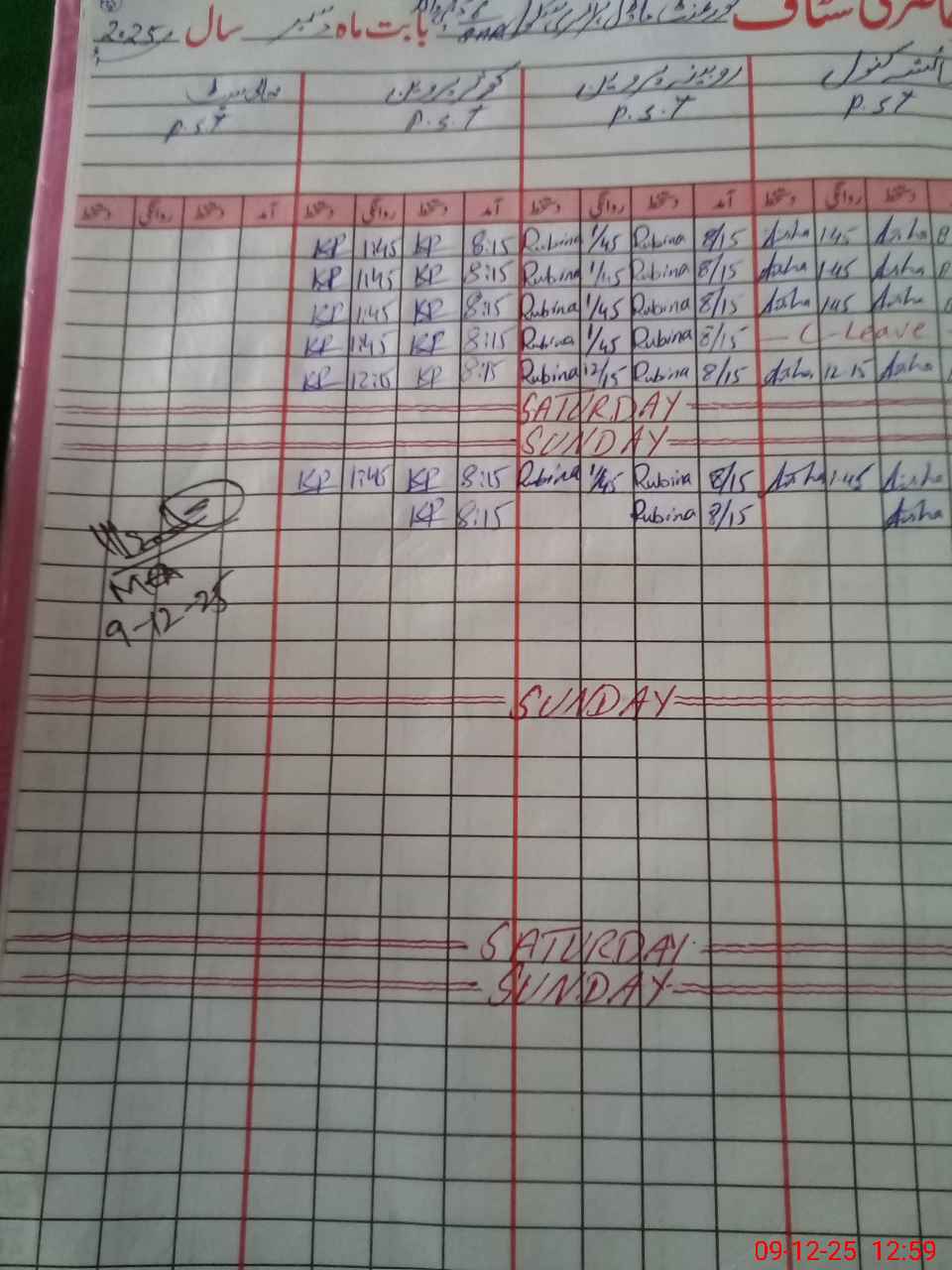 | CNIC | Full Name | Designation | R/C | Absence During Last Calender Month |