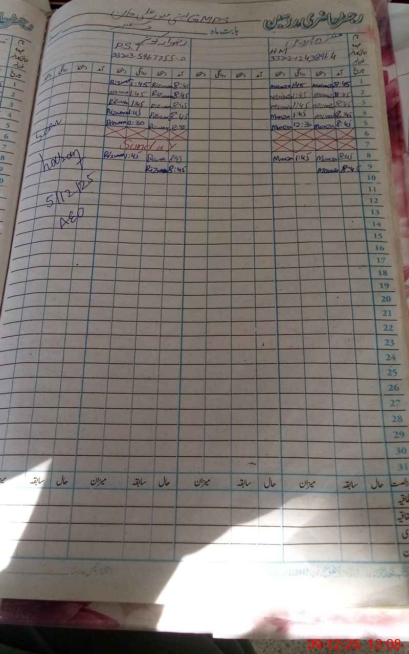 | Name: MU**** PE**** Designation: (School Headmaster's/Headmistress's) PST Phone/Cell Number: 03**** |