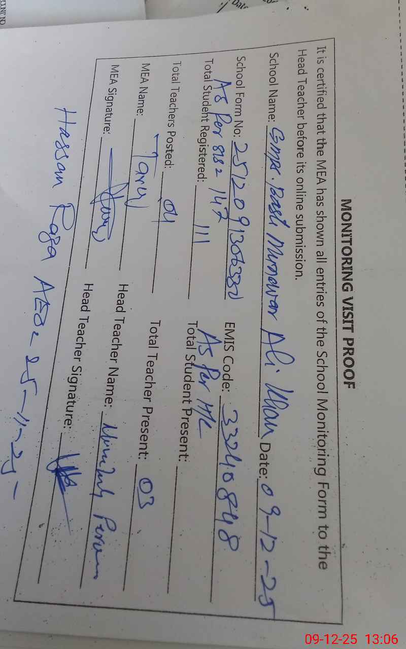 | EMIS Code: 33240848 | Name of School: GMPS BASTI MUNAWAR ALI KHAN | |||