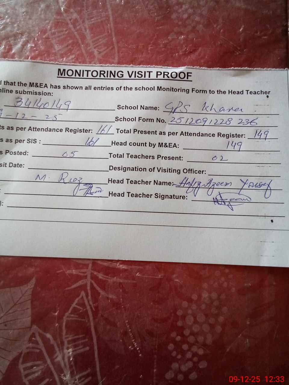 | EMIS Code: 34140149 | Name of School: GPS KHARA | |||