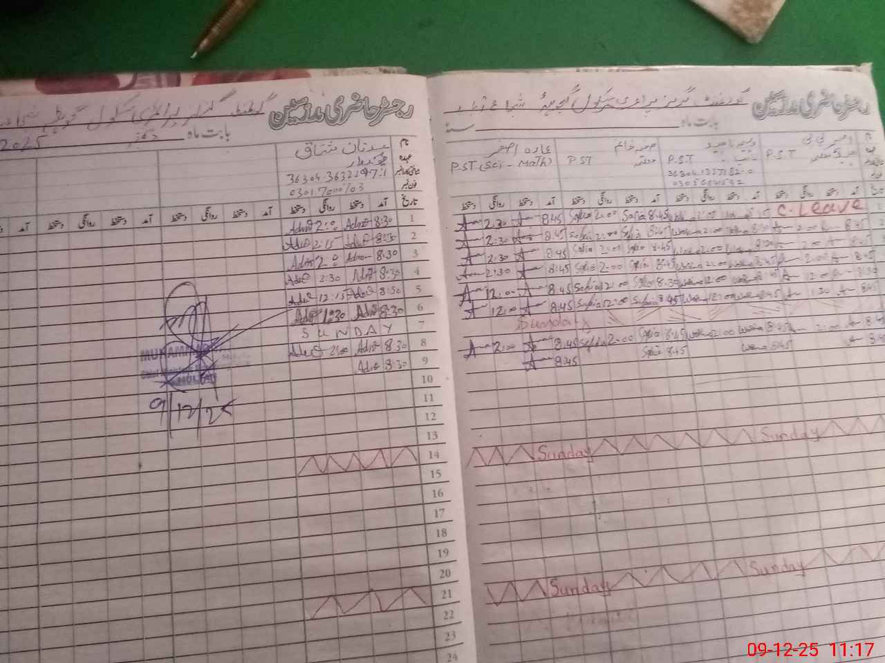 | CNIC | Full Name | Designation | R/C | Absence During Last Calender Month |