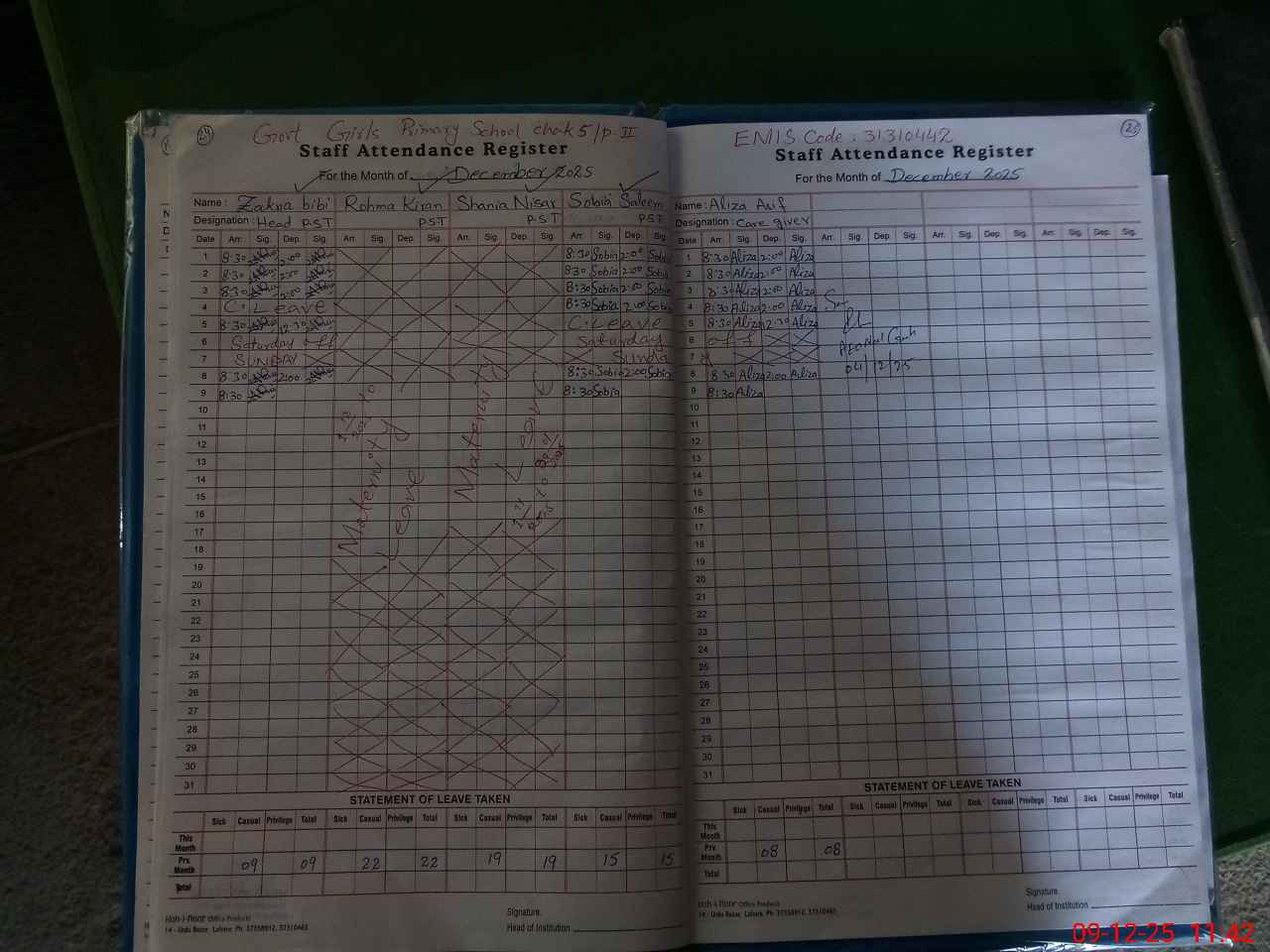 | 31**** | Sh**** Ni**** | PST Science/Maths | Regular | 0 | 0 | 0 | 0 | 0 | 0 | 0 | 0 | 0 | Maternity |